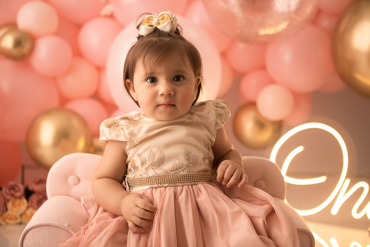 Ensaio da Maluzinha, tema jardim encantado. Todo cheio de balões, ficou lindo e ela amou.